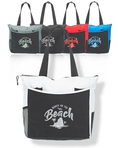 TOTE CANVAS BAG WITH SIDE MESH POCKET